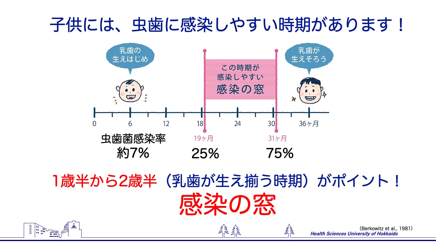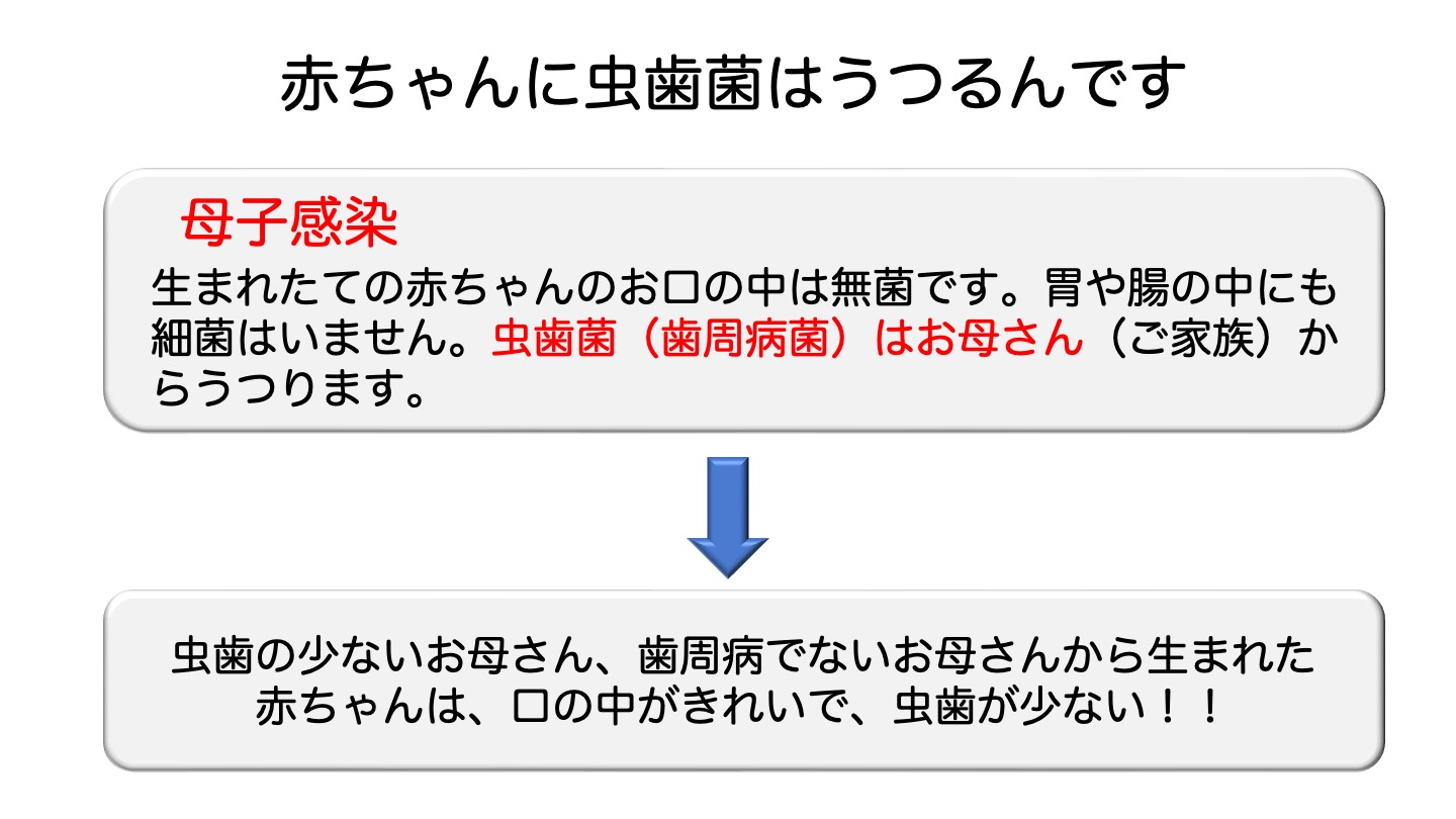 特にこの時期に母親の口腔内環境が悪いと、子どもへの感染リスクが高まります。